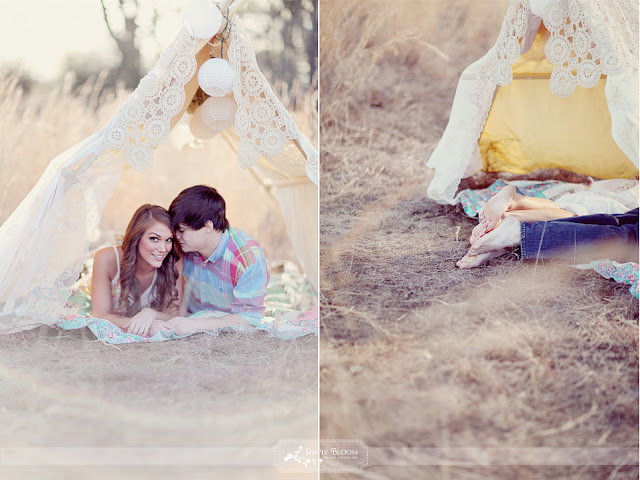 If you’re looking for a romantic engagement shoot idea, look no further than your backyard! Set up a tent, incorporate some twinkle lights or an antique lamp found in your garage and you’ve got yourself a whimsical backdrop for your shoot. How sweet is this idea of tea for two in a tent?